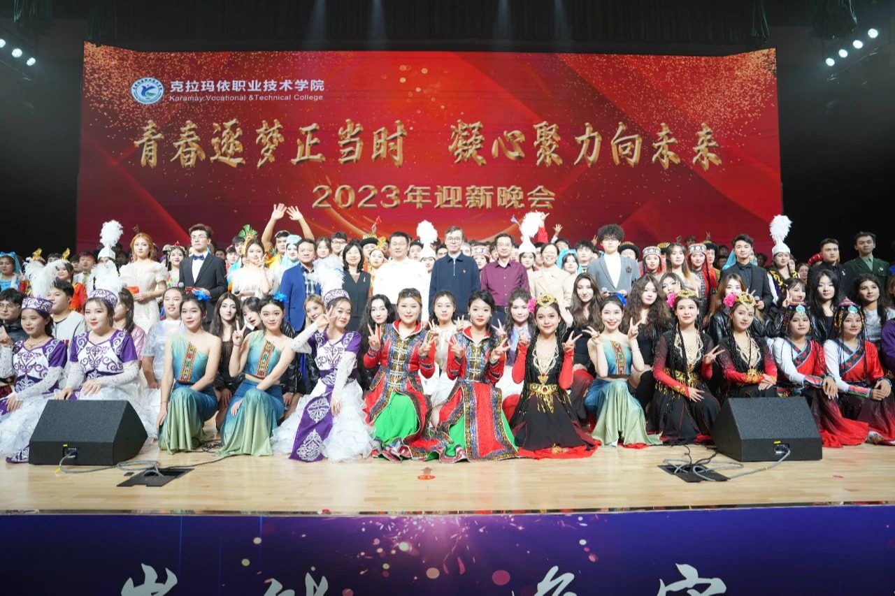 11月29日,克拉玛依职业技术学院在大学生活动中心举办2023年迎新晚会。本次晚会以“青春逐梦正当时,凝心聚力向未来”为主题,旨在为新生们献上一场精彩纷呈的文艺盛宴,让他们感受到校园文化的魅力,激发对未来的憧憬与向往。