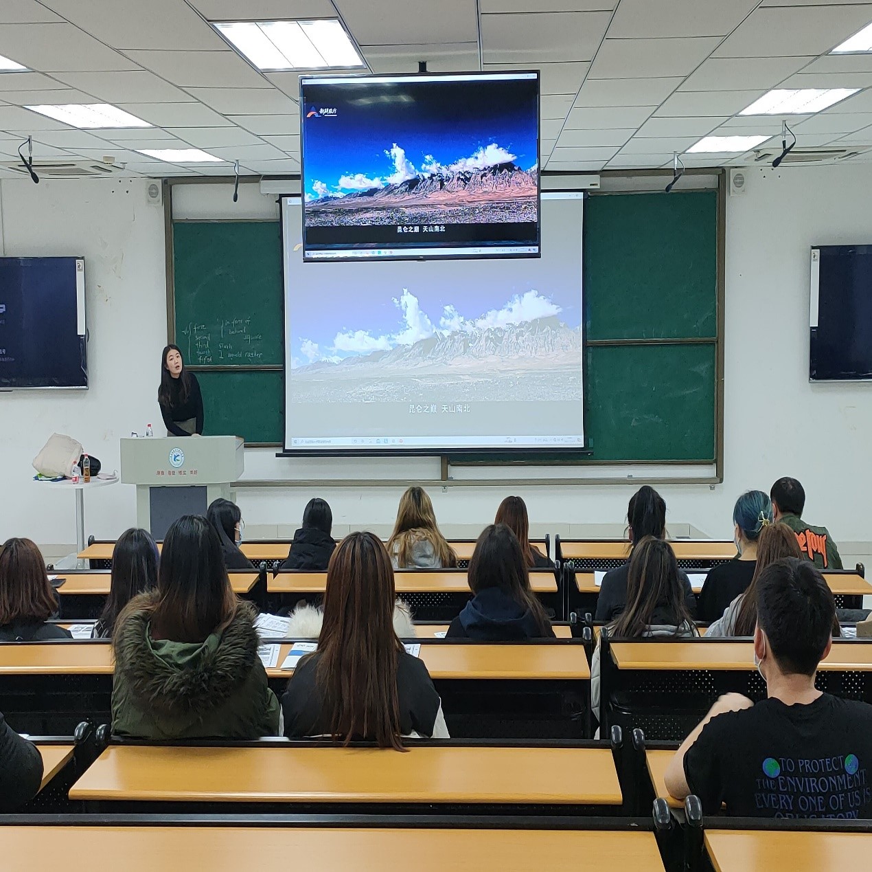 会议现场,新疆牧神机械有限责任公司人力资源部的陶女士为参加会议的同学们详细的介绍了公司的概况、工作环境、培训资源及提升通道等,又通过视频展示了公司的运营,企业的前景等。