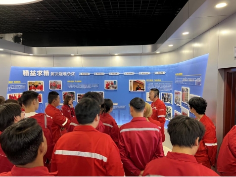 学院兼职教师祁明业师傅首先在总站入口给学生们讲起了中国输油管道的历史,又介绍了油气储运公司现有的一些前沿技术和方法。然后在国家级技能大师工作室给学生们分享了大师们在设备升级改造、解决“卡脖子”技术等方面开展的工作,既丰富了学生们的视野,也在学生心中埋下了技能强国、升级创新的种子。