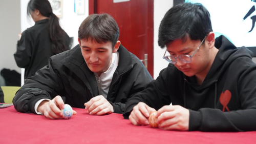 师生共同学习非遗蛋雕技艺