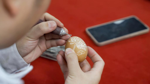 陈嘉艺老师展示非遗蛋雕技艺