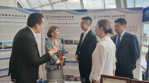 会前,教育部、自治区有关领导和中外嘉宾共同观看“留学中国·学在新疆”教育推广展,见证“留学中国”品牌形象及综合服务平台发布,并同来华留学生代表合影留念。在学院展位前,领导们听取了学院国际教育交流合作情况汇报,对学院教育外事工作给予了高度评价,勉励学院要进一步深化教育领域交流合作,探索产学研用协同创新的新模式、新路径,实现教育链、人才链与产业链、创新链的有机衔接,为推动区域经济社会高质量发展作贡献。