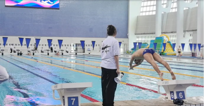 比赛现场,我院选手们个个精神抖擞、斗志昂扬。他们在泳池中如蛟龙般穿梭,划水、转身、冲刺,每一个动作都展现出扎实的游泳功底和顽强的拼搏精神。面对实力强劲的对手,他们没有丝毫畏惧,始终保持着昂扬的斗志,用汗水诠释着对体育的热爱。