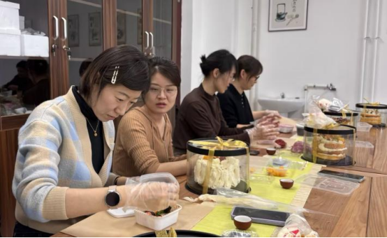 随后的创意手工环节更是精彩纷呈。女教师们化身巧手匠人,在蛋糕裱花与寿司制作中展现别样风采。蛋糕上的点缀、寿司卷中的创意造型,每一件作品都凝聚着智慧巧思。活动现场欢声笑语不断,平日严谨治学的教师们在此刻尽情释放艺术创造力。