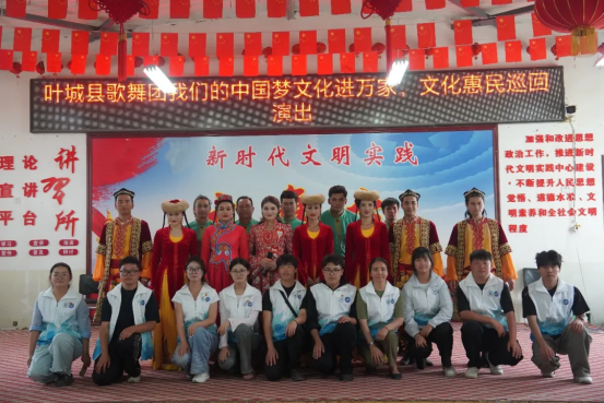 叶城县歌舞团团长告诉实践团这是公益演出,每天四场,在各村轮流开展,旨在丰富广大村民的精神文化生活,激发村民热爱祖国、热爱家乡、建设美好家园的热情和动力。