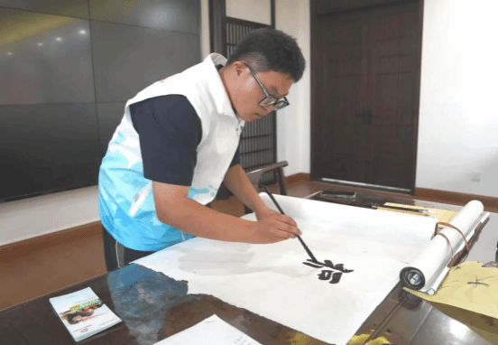 昆仑国学书院既是浸润文脉的“文化打卡地”,更是以字为媒的 “推普课堂”。实践团成员常正澎携笔墨纸砚而来,为孩子们铺展开一场“笔墨载言、字语共生”的书法之旅。在这里,每一笔横竖撇捺,都是国家通用语言文字的鲜活注脚。