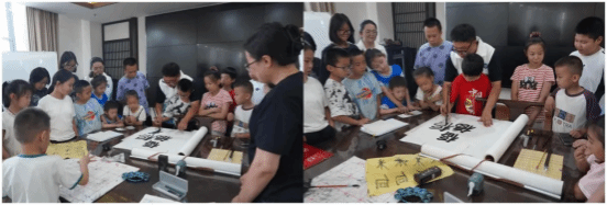 “大家喜欢书法吗?”一声问候点燃了课堂热情。“喜欢!完成作品时特别开心!” 孩子们的童声清亮而真挚。常正澎顺势展开讲解:从笔锋的提按转折,到篆隶楷行草的流转变化,再到文房四宝的千年故事,知识点如涓涓细流浸润童心。当他挥毫演示楷书的端正、行书的飘逸时,孩子们的掌声如潮而起,更纷纷提议“一起写”。半生半熟的宣纸上,不仅晕染着墨香,更印刻着规范用字与流畅表达的互动 ——孩子们在提笔落墨中熟悉汉字结构,在念字释义中巩固语言运用,书法成了国家通用语言文字最生动的“实践场”。一堂课毕,笔墨不仅传递着文化之美,更让国家通用语言文字在笔尖与舌尖的共鸣中,真正走进了孩子们的心里。