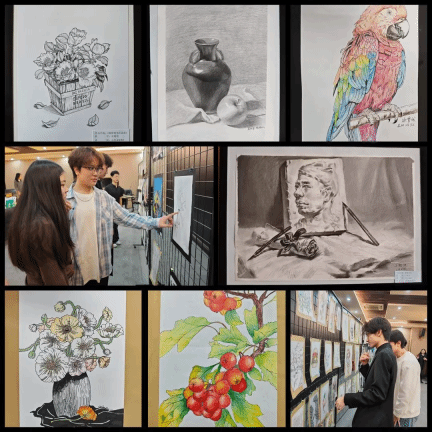声乐决赛中,选手们的表现可圈可点。有的选手凭借高亢嘹亮的高音震撼全场,将歌曲中的情感演绎得淋漓尽致;有的则以细腻入微的情感表达打动人心,让观众沉浸在歌曲的意境中。参加舞蹈决赛的选手们,用优美的舞姿和富有感染力的表演,展现了舞蹈的魅力,将现场气氛一次次推向高潮。器乐表演赛同样精彩纷呈,冬不拉的演奏在选手们的指尖下流淌出美妙的旋律,他们熟练的技巧和投入的表演,赢得了观众的阵阵掌声。绘画(决赛)展区则宛如一个艺术的殿堂,一幅幅精美的画作悬挂在展架上,吸引着师生们驻足欣赏。细腻逼真的素描、色彩斑斓的彩铅、灵动别致的线描画等,每一幅作品都凝聚着同学们的心血和智慧,展现着他们对美的独特理解。