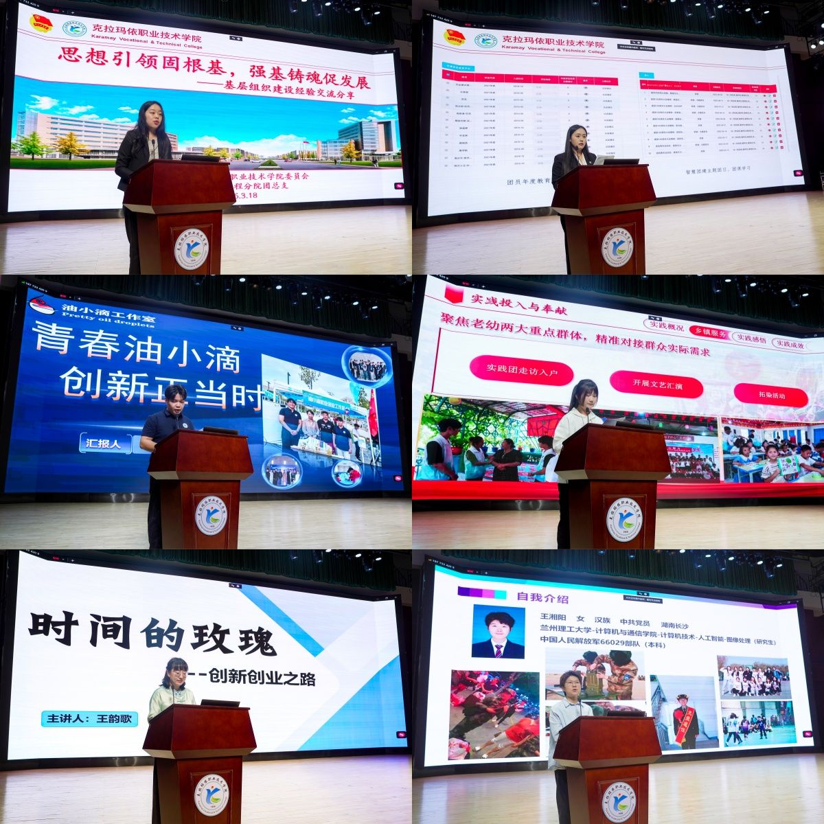 六位师生作为典型代表登台分享经验。石油化学工程分院团总支书记陈雨焓分享凝聚团员力量、夯实组织基础的举措;优秀团支部代表苏梅畅分享“活力团支部”创建心得;“油小滴”社团代表阿卜杜艾尼·阿卜力孜讲述专业知识与校园文化融合的实践;暑期社会实践优秀团队代表王雪瑶分享“三下乡”见闻感悟;“挑战杯”获奖团队代表王韵歌传递以赛促学、科技报国的担当;优秀教师王湘阳以自身捐献造血干细胞经历,鼓励青年学子无私奉献,诠释青春价值。发言赢得现场师生阵阵掌声。