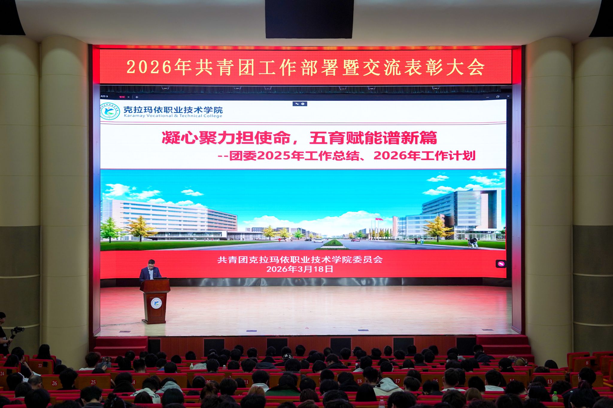 为总结2025年工作成效,部署2026年重点任务,表彰先进典型、凝聚青年力量,3月18日,学院2026年共青团工作部署暨交流表彰大会在克拉玛依校区大学生活动中心礼堂隆重举行。学院党委书记张应勋,党委委员、副院长张国伟,教育局党组成员、督导室主任于洋,团市委青宣部部长杨帆出席会议。