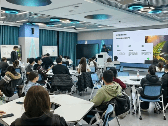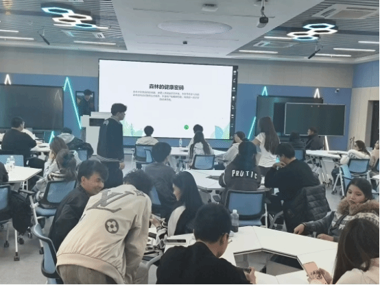 活动现场气氛热烈,同学们展现出对森林保护相关知识的浓厚兴趣。在知识讲解环节,大家聚精会神,跟随演示文稿系统学习森林生态价值、全球森林现状及保护举措等内容。“从节约每一张纸、拒绝一次性餐具做起,从参与植树造林、环保志愿服务做起”,生动的案例和具象的行动建议,让绿色生活的理念变得清晰而具体。