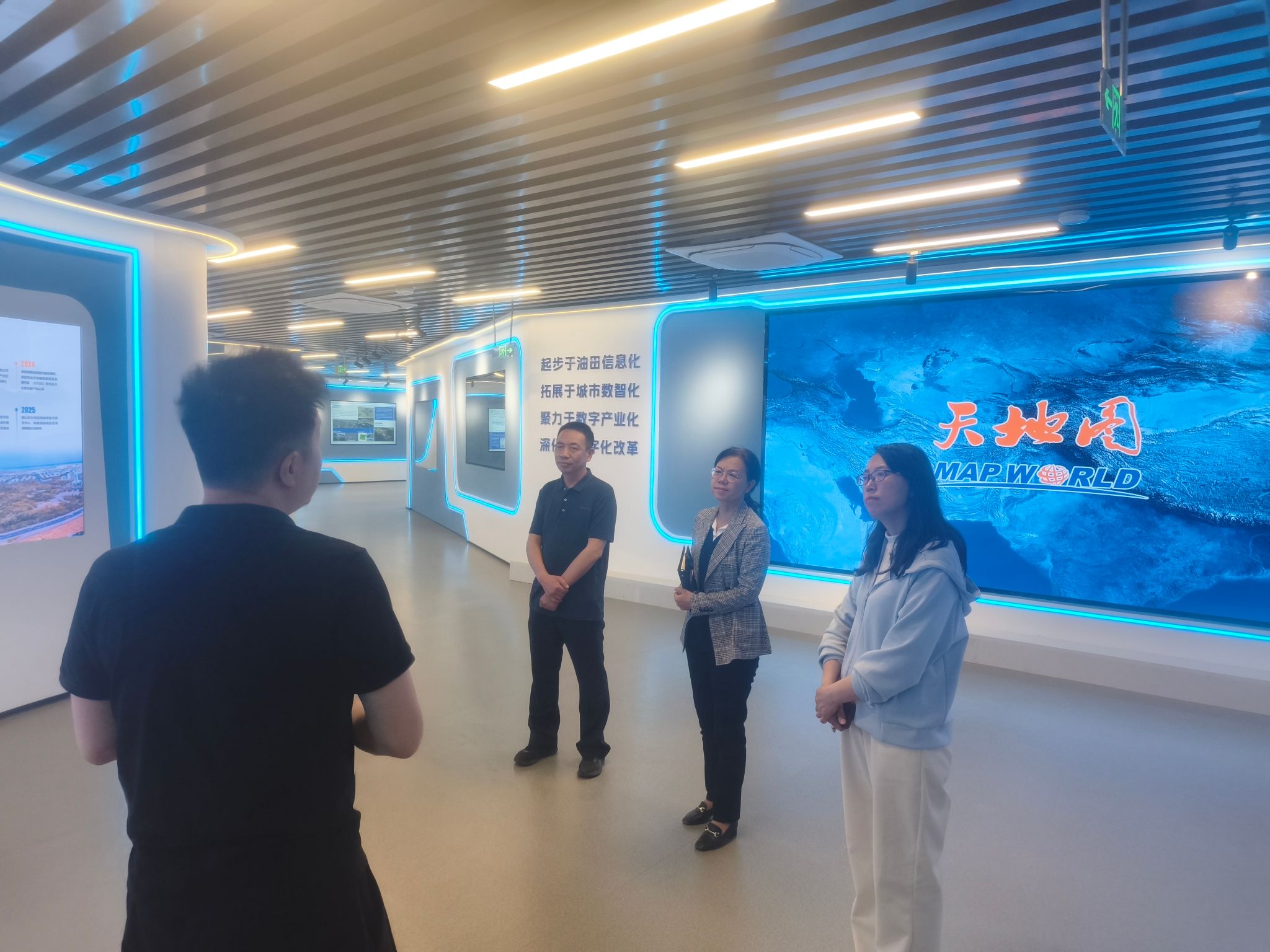 公司高管对学院一行的到访表示热烈欢迎,并详细介绍了企业发展历程与现状。克拉玛依天地图有限公司成立于2012年2月,是由克拉玛依市政府与国家基础地理信息中心组建的国有控股企业,主要承担国家“天地图”平台在政府、石油石化及公众领域的应用,公司聚焦地理信息数据服务、智慧应用研发、油田技术支持三大领域,是集数据采集处理、系统研发、智慧城市建设于一体的高新技术企业,拥有多项专业资质,技术水平位居疆内同行业前列。