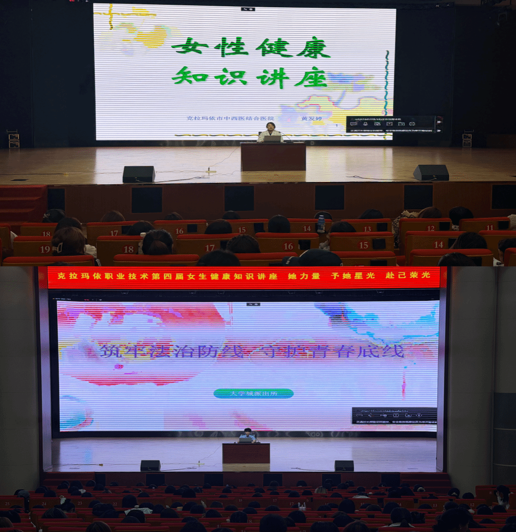 本次讲座在克校区、独山子校区分别开展,确保两校区女生都能参与其中、有所收获。克校区讲座于4月15日,在学生活动中心举行,主讲嘉宾包括市中西医结合医院黄发婷医生、大学城派出所闫雨楠警官及唐努尔·吐尔哈力老师,从医疗健康、安全防护、自尊自爱等多维度开展讲解;独山子校区讲座于4月23日17:40,在大报告厅举行,邀请了壹昇堂梁若晨医生、公安分局刑事侦查大队叶文警官授课,聚焦女生健康与安全热点问题。本次讲座的参会人员为全校在校大一女学生及全体女辅导员,确保覆盖核心群体。