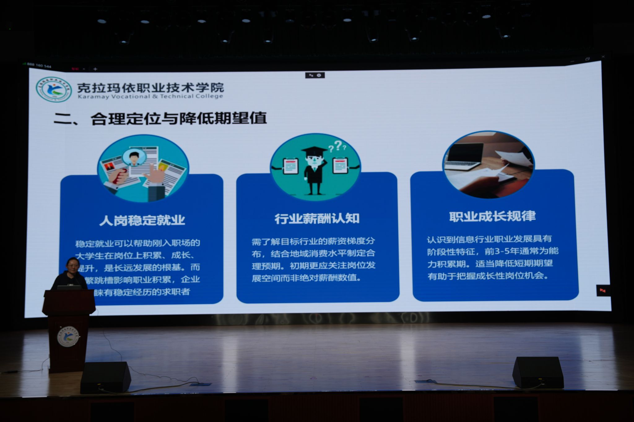 会议进入第二阶段,围绕就业形势与求职策略展开交流。党支部书记田娟结合信息工程类专业办学特色与行业发展实际,为同学们深度解读就业现状与发展前景。她重点梳理了新疆及克拉玛依本地数字经济高速发展带来的广阔机遇,介绍新疆已密集出台并落地 “人工智能 +” 系列政策文件与专项推进举措,克拉玛依市持续深耕 “一主多元” 产业发展体系,本地信息安全、软件开发、大数据技术等领域人才缺口持续扩大,技术型毕业生就业需求十分旺盛,并结合就业相关数据进行直观分析,引导同学们把握西部大开发政策红利,转变就业认知、树立 “先就业、后择业” 的理性求职理念,科学调整就业薪资预期,主动适应职场环境,在实习实践中完成从 “学校人” 到 “企业人” 的身份与心态转变,稳步走好职业发展第一步。