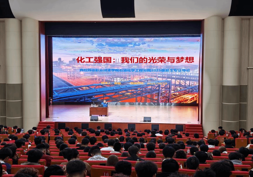 为帮助2025级新生树立专业自信、明确职业方向,10月13日,石油化学工程分院以专题讲座形式,在克拉玛依校区学生活动中心展演厅及独山子校区线上课堂同步开展2025级新生专业导论(职业素养)课程。本次课程特邀中国石油独山子石化首席技师、国家级技能大师工作室领办人薛魁担任主讲,围绕“化工强国:我们的光荣与梦想”主题,为585名高职新生及126名中职新生带来了一场兼具行业深度与成长温度的专业启蒙课。讲座中,薛魁大师以“认识行业—...