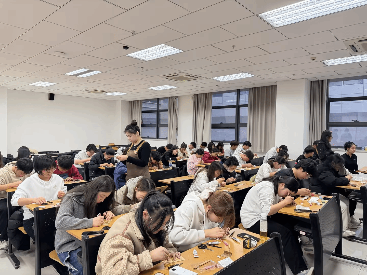为丰富学生校园文化生活,传承中华优秀传统文化,培育学生的工匠精神与审美素养,11月26日石油化学工程分院组织了掐丝珐琅手工体验活动,60余名学生积极参与,在指尖创作中感受传统工艺的独特魅力。活动伊始,指导老师详细讲解了掐丝珐琅的历史渊源、工艺特点及制作流程,从金丝的裁剪、弯折、粘贴,到釉料的调配、填充、晾干,每一个步骤都进行了细致演示,同学们听得聚精会神,跃跃欲试。 活动现场在实践环节,大家按照指导有条不紊地操作,...