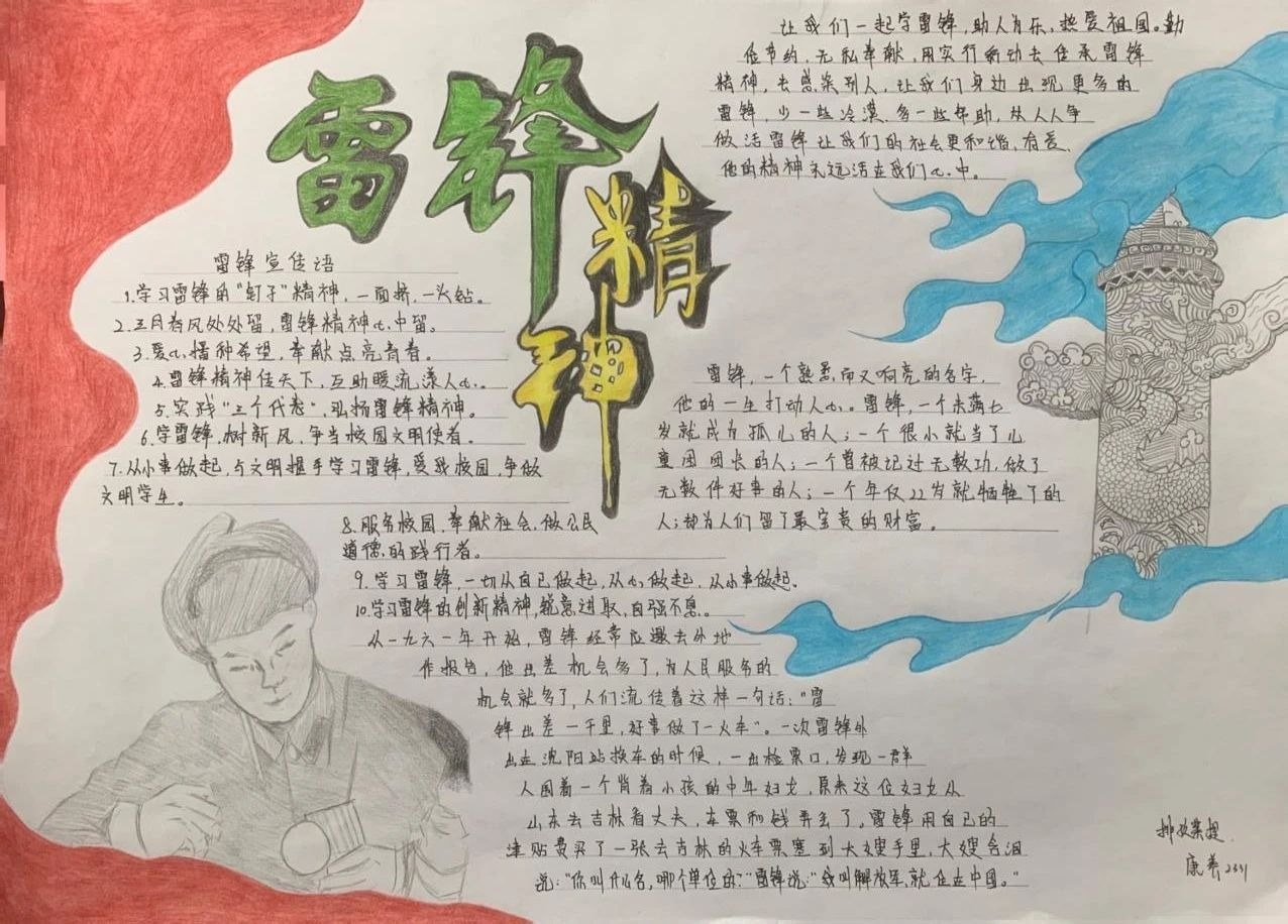 为大力弘扬雷锋精神,增强青少年奉献服务意识,经济管理分院、马芮名班主任(辅导员)工作室开展了以“学雷锋 做先锋”为主题的学雷锋手抄报比赛。旨在通过手绘的形式,让青少年们深刻领会雷锋精神的内涵,并激发他们践行社会主义核心价值观的热情。