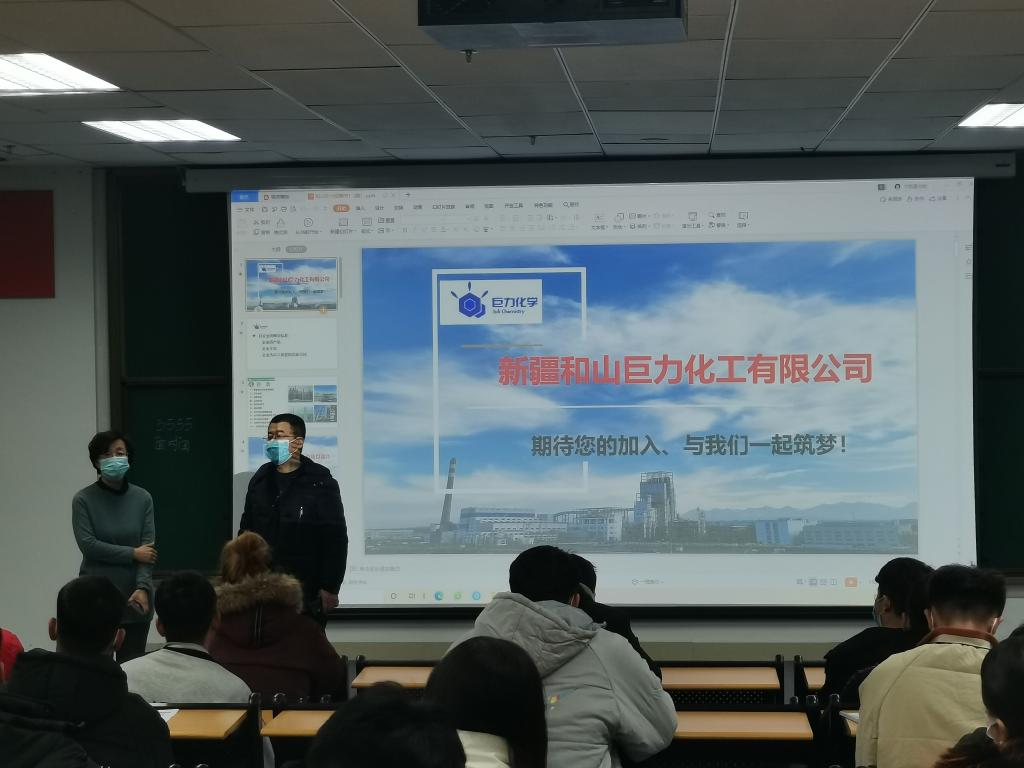 2021年12月6日,新疆和山巨力化工有限公司的魏总与人事招聘专员蔡珍专程到访克拉玛依职业院校学院,并于下午七点,在C2-ll-102教室举办了新疆和山巨力化工有限公司机械工程系专场宣讲招聘会。
