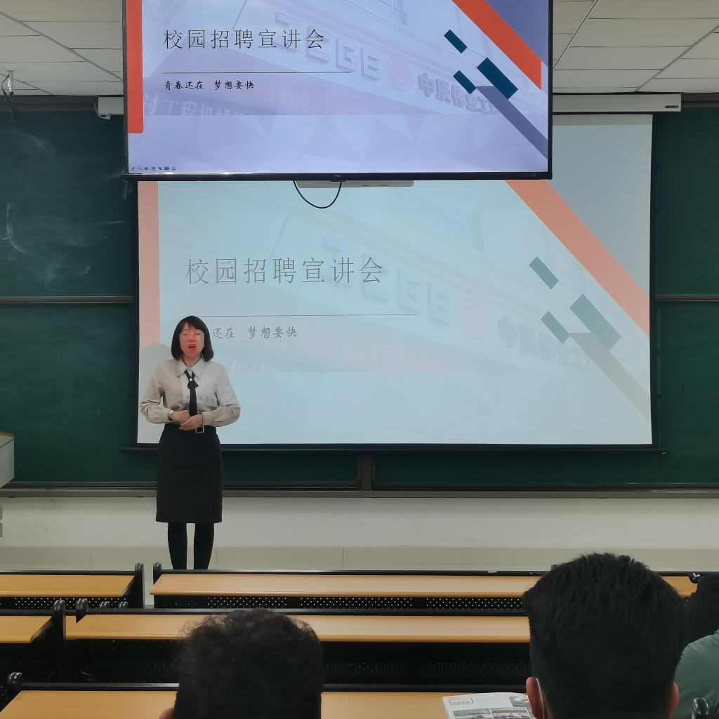 乌鲁木齐中辰伟业工程机械有限责任公司人力资源部部长何玉玲作为主宣讲人,通过PPT、视屏展播的形式为到场参与宣讲的学生,认真介绍了公司的地理位置、规模、工艺技术、企业文化、晋升路径等情况,并重点为同学们详细介绍了企业的招聘岗位及相关待遇。现场互动环节中,北疆大区服务经理徐龙与同学们深切交流,对顶岗实习要求进一步进行了明确,企业表示工作岗位需要能吃苦、有责任心、专业技术知识扎实、目标清晰且明确的学生,会后,有意向的学生向公司投递了简历。