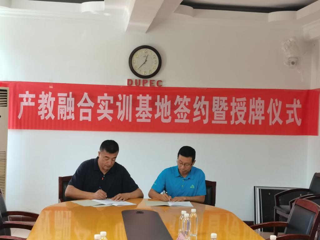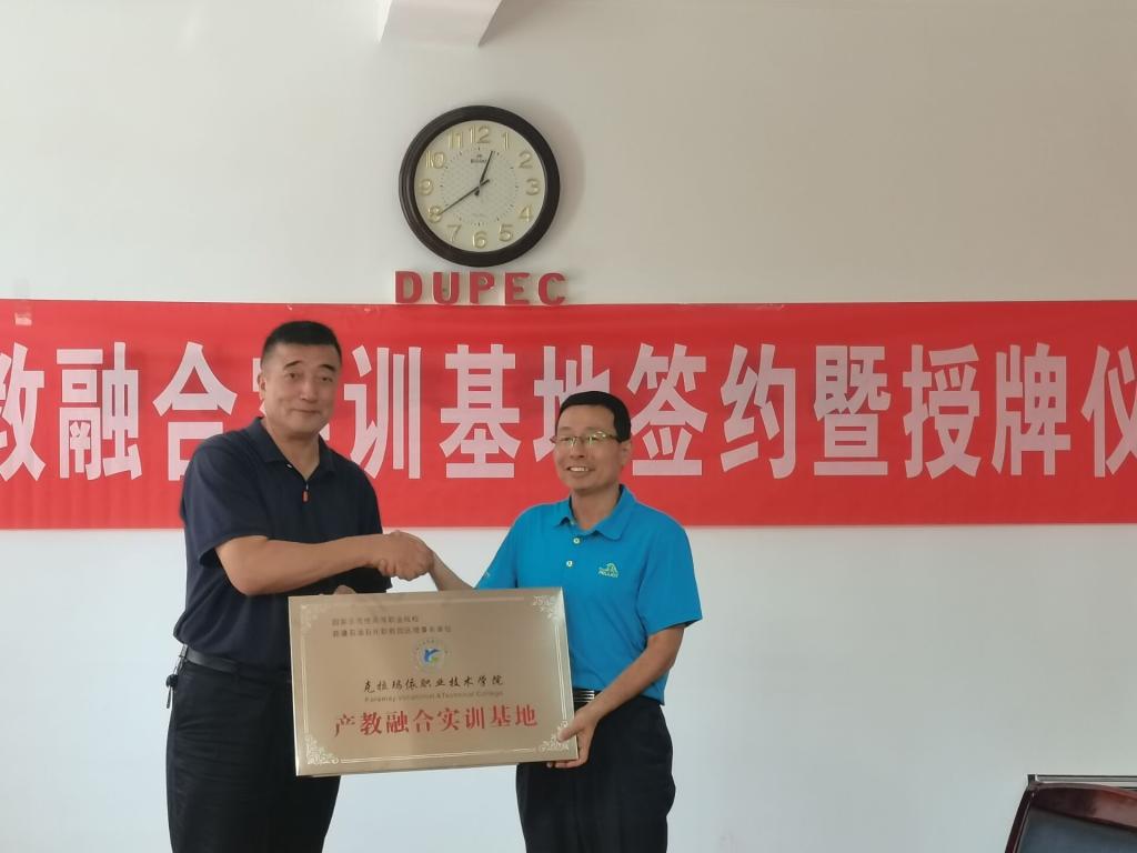 学院党委副书记、纪委书记扎克•司马义介绍了学院的发展情况,并就拓宽就业渠道、拓展就业岗位、开展实习实训、加强就业指导等方面与企业领导进行了深入交流,代表学院与企业签订了《产教融合校企合作协议》,扎克•司马义与孙晨亮为克拉玛依职业技术学院产教融合实训基地和教师企业实践流动站进行了揭牌。