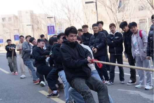 在激烈的角逐中,多场比赛都进入了白热化阶段,双方僵持不下,胜负难分。尤其是电气2151和供电2332的决赛,更是将比赛气氛推向了高潮。两队队员实力相当,比赛一开始就陷入了胶着状态。绳索在两队之间来回移动,双方队员都拼尽全力,汗水湿透了他们的衣衫,但他们依然毫不退缩。在关键时刻,电气2151的队员们团结一心,喊着整齐的口号,发起了最后的冲刺。他们咬紧牙关,齐心协力,终于成功地将绳索拉过了红线,赢得了比赛的胜利。全场顿时响起了雷鸣般的掌声和欢呼声,电气2151的同学们欢呼雀跃,庆祝这来之不易的荣誉。