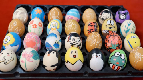 立蛋挑战中,同学们专注于小小的鸡蛋,不断调整位置和角度,感受专注力带来的内心平静。除了传统的立蛋,活动还融入了手工创意环节, 同学们发挥奇思妙想,用彩笔在鸡蛋上自由绘制,让普通的鸡蛋摇身一变成为独具匠心的“艺术品”。