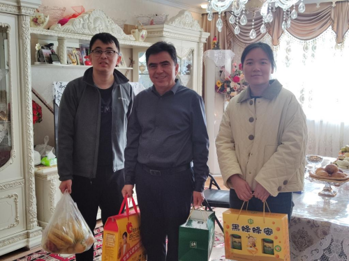 3月26日,电子与电气工程分院工会主席魏晨华、工会组织员钟梦娇一行前往刚出院休养的艾克木·尼牙孜老师家中,代表分院工会送上关怀与慰问。