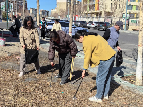 活动当天,党员教师和学生们在社区工作人员的协调下迅速分组并领取扫帚、垃圾袋等工具。大家分工明确,配合默契;有的清扫路面落叶和烟头;有的深入绿化带捡拾隐藏的纸屑、塑料瓶等垃圾;还有的擦拭社区宣传栏、健身器材等公共设施,确保环境焕然一新。