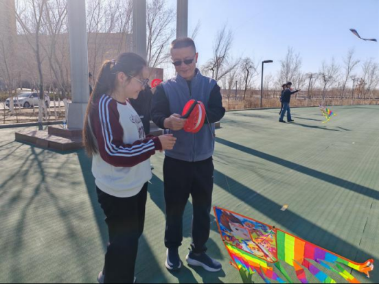电子分院党支部书记姚新冬传授放风筝技巧