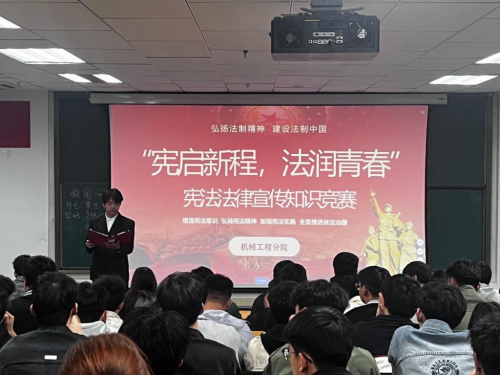 为深入贯彻习近平法治思想,大力弘扬宪法精神,4月7日至4月16日,机械工程分院精心策划并举办了一场别具一格的宪法知识竞赛。此次活动得到了分院15个班级全体学生的热烈响应与积极参与,活动取得了圆满成功。