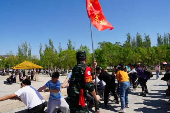 学院退役军人志愿者组织小学生开展拔河比赛