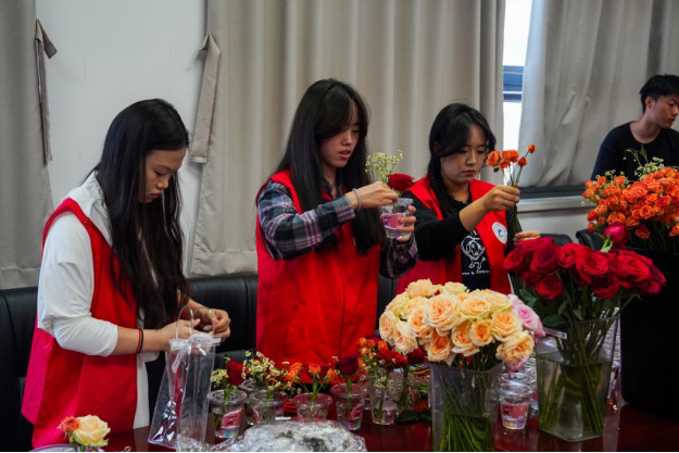 活动筹备阶段,石油工程分院的师生精心策划,分工协作,设计出色彩鲜艳的卡片,将鲜花修剪搭配,精心布置活动场地,为活动成功举办打下坚实基础。