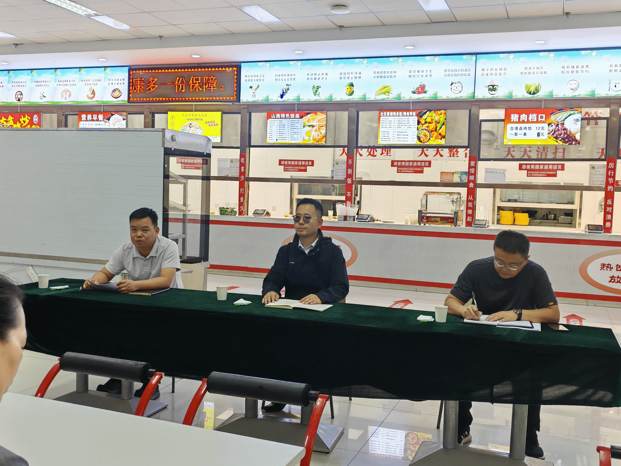 为深入贯彻落实国务院食安办等五部门《关于进一步加强校园食品安全工作的通知》精神,切实提升校园食品安全治理水平,全面压实主体责任和管理责任,2025年9月12日,克拉玛依职业技术学院副院长张国伟在学生第一餐厅主持召开食品安全现场办公会,专题部署2025年秋季学期学院食品安全工作。学院后勤管理处负责人、餐饮中心工作人员、食堂经营者、供货商及食材验收管理人员参加会议。