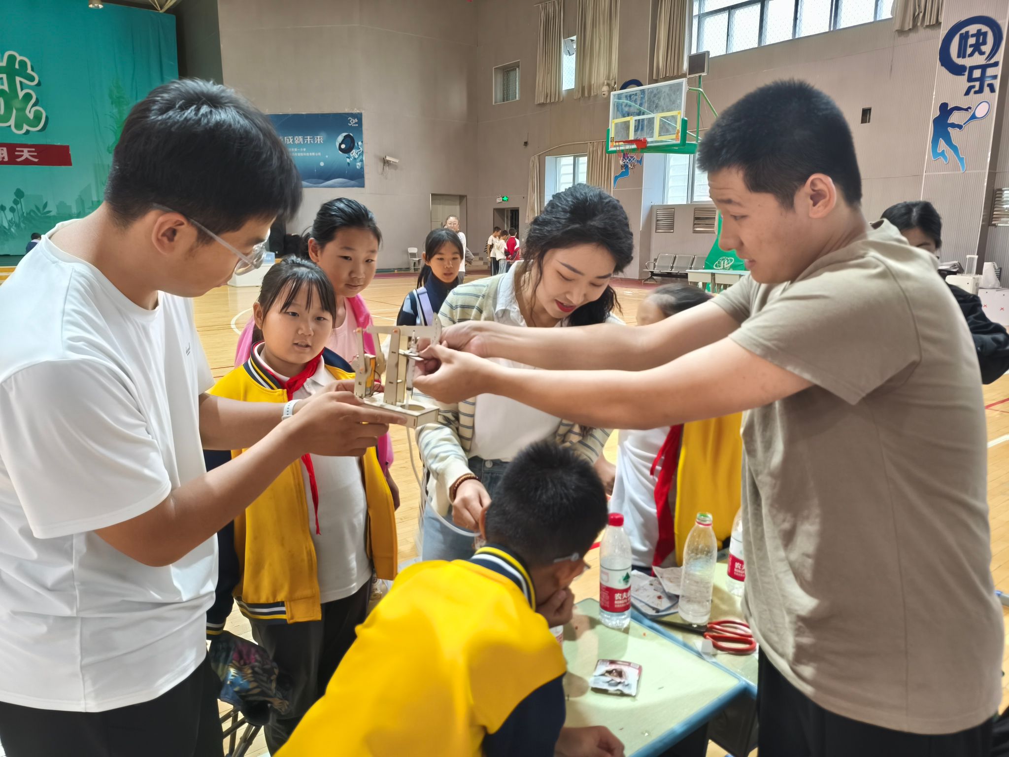 小学专场:嘉年华里的“科技小课堂”。9月12日,在克拉玛依市第一小学青少年科学嘉年华活动现场,刘菊泉老师携孙庆哲、赵凯雄两位大二同学,带来“mini磕头机制作”“拼装盐水动力风车”两项趣味科普体验。生动的讲解、可操作的器材吸引了100多名小学生踊跃参与,孩子们在组装与调试中感受科技魅力,激发科学探索兴趣。