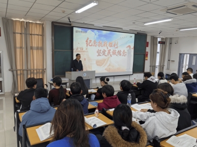 院长魏新、纪委书记王谊和副院长甫日海提·卡德尔以“纪念抗战胜利,坚定民族信念”为主题,以丰富的史料和生动的案例,全景式回顾了中国人民十四年抗战的壮阔历程,结合《满铁档案》《抗日战争档案史料》等权威文献,揭示了中国共产党在全民族团结抗战中的中流砥柱作用。以“三个历史回响”作答,从《论持久战》战略智慧、延安文艺座谈会精神、国际反法西斯统一战线,分别链接当代中国应对百年变局的底气、文化自信的传承创新及人类命运共同体的时代价值,为学子们解码了抗战精神的时代内涵。
