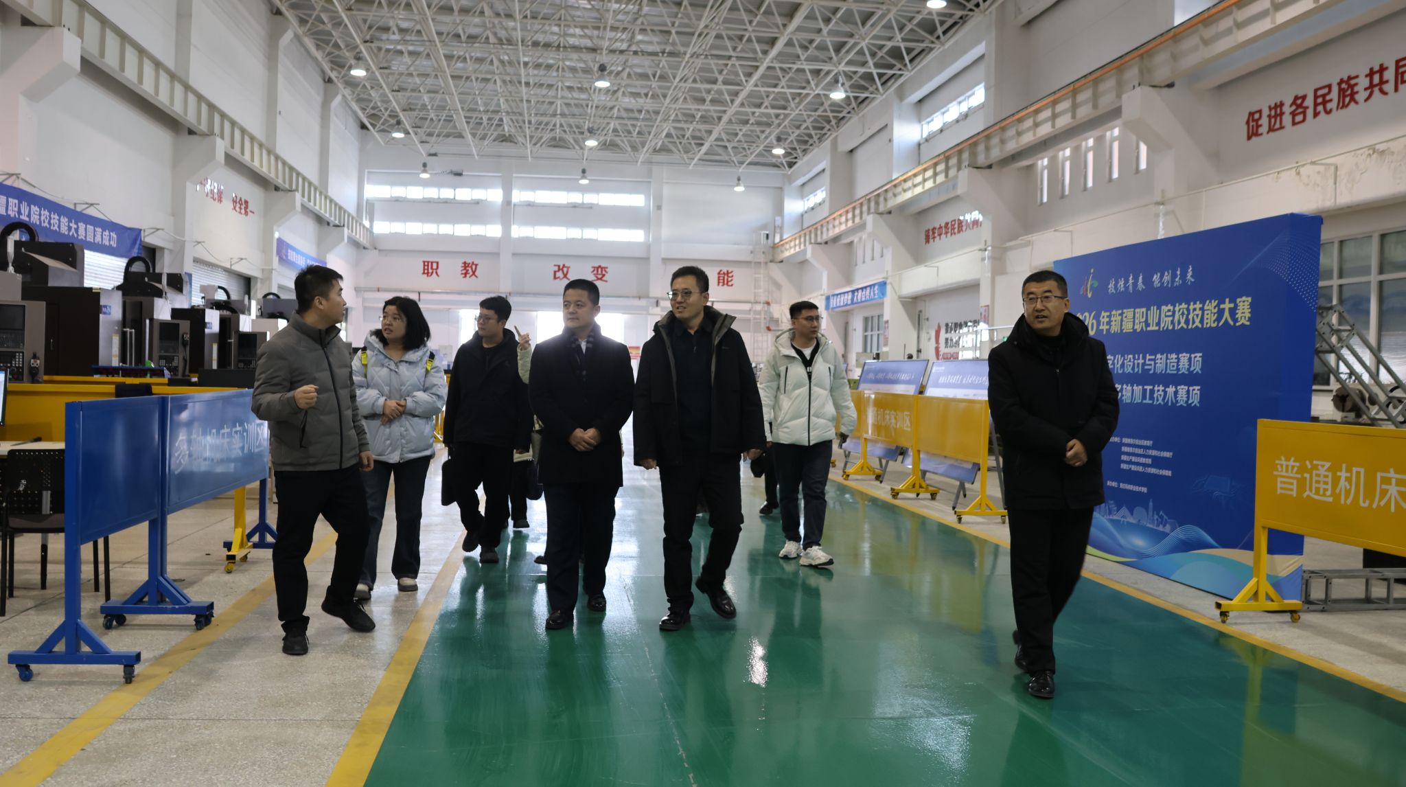 塔城职业技术学院调研组一行先后参观了学院马克思主义分院铸牢中华民族共同体意识实践体验基地,信息工程分院国家虚拟仿真实训基地研创中心、华为开发者创新中心,机械工程分院、电子与电气工程分院智能制造实训中心。参观过程中,两院领导就专业建设、实训室管理、学生培养等进行了现场交流。