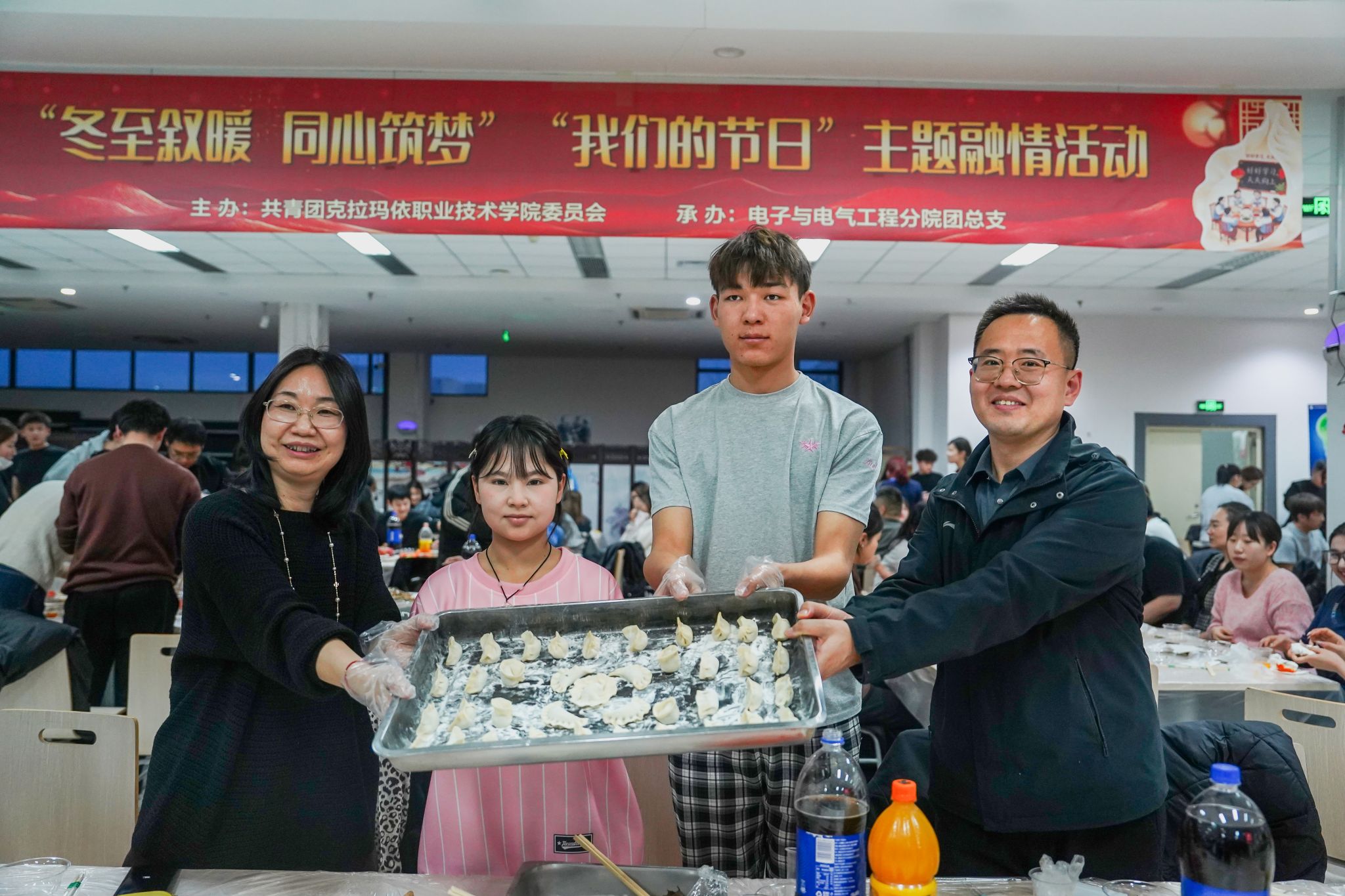 朔风送冬来,饺香暖人心。为传承和弘扬中华优秀传统文化,厚植师生家国情怀,学院团委、电子与电气工程分院团总支于12月19日举办“冬至叙暖・同心筑梦”“我们的节日”主题融情活动。克校区各支部师生齐聚一堂,以歌舞寄情、以问答传知、以包饺子话团圆,在欢声笑语中感受传统节日魅力,在携手协作中凝聚民族团结力量。