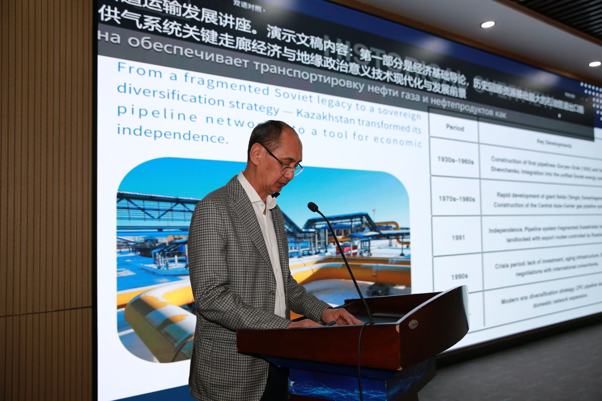 讲座共设置了六个专题报告,内容涵盖管道运输、焊接技术、智能采油、钻探修井及测井技术等多个领域。哈萨克斯坦阿特劳石油天然气大学的苏伊加利耶夫·加比特博士首先作了题为《哈萨克斯坦管道运输发展》的报告,系统介绍了该国管道运输体系的发展历程与技术现状。随后,阿比舍夫·穆拉特博士围绕《管道焊接》主题,分享了油气运输管道焊接工艺的专业见解。卡里莫娃·阿克马尔博士则就《石油集输系统中过滤过程的流体力学基础》进行了深入讲解。布克特巴耶娃·索列教授基于阿特劳地区石油储层特点,作了《油气井钻探与修井作业》专题报告。中方专家同样带来了高水平分享。石油工程分院查潇潇博士作了《有杆采油系统智能诊断与优化配置方法》报告,介绍了智能化技术在采油系统中的应用。樊宏伟教授以《砾岩小井眼测井技术研究进展与挑战》为题,为本次系列讲座作了精彩收尾。