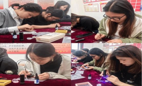 活动过程中,同学们全身心投入,专注于图案构思、螺钿打磨、精准镶嵌等每一个环节。大家相互交流创作思路、分享创作心得,在沉浸式的手工体验中倾诉内心感悟,将个人心境与美好期许融入作品之中,让螺钿的天然光泽承载心声,让指尖技艺传递温暖与力量。