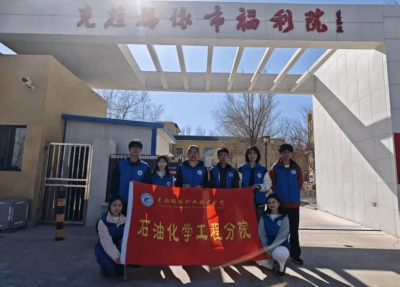 石油化学工程分院志愿者在克拉玛依市福利院门口合影