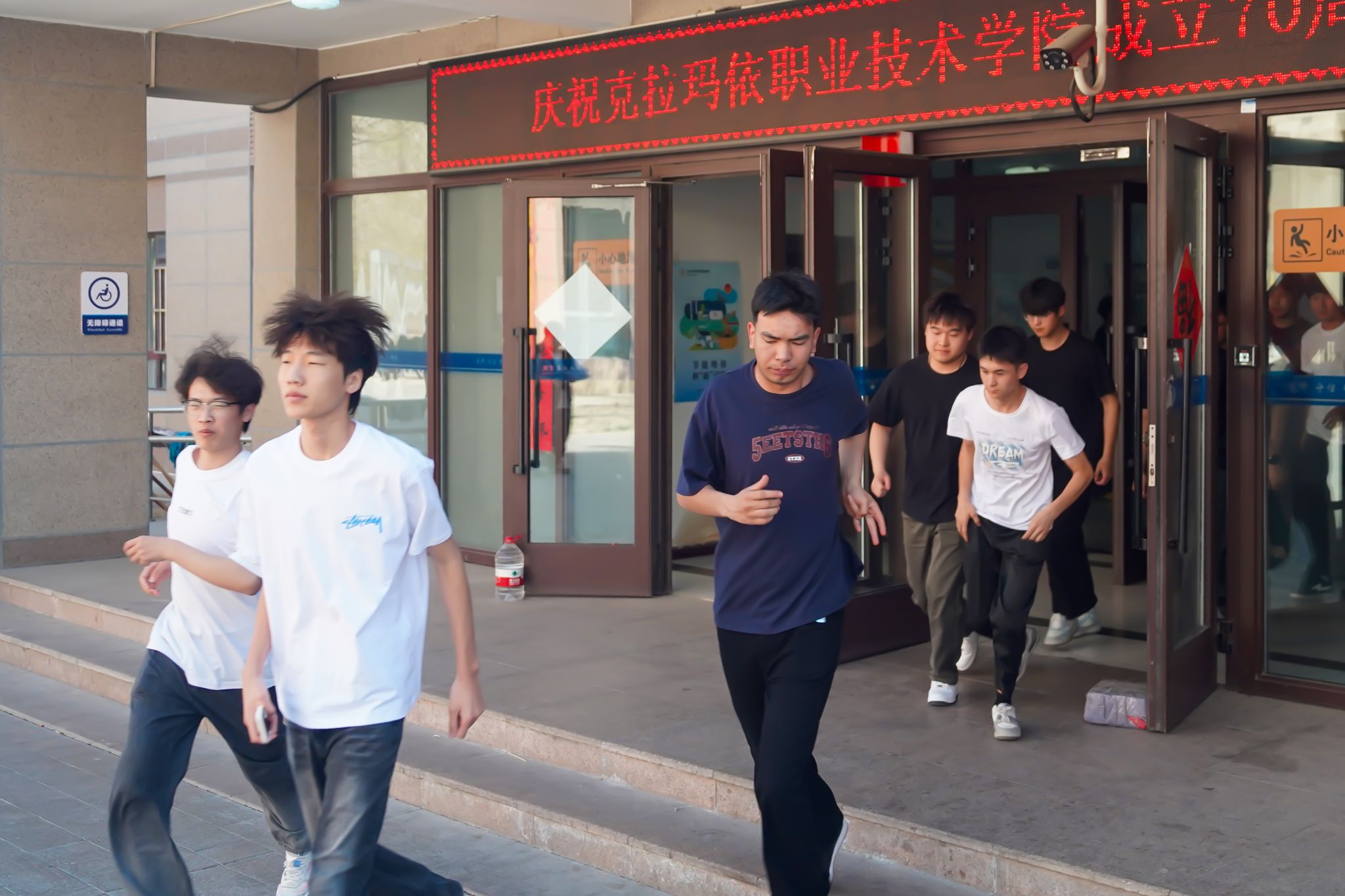 随着演练指令的发出,B5宿舍楼模拟发生“火情”,听到警报声后,现场迅速进入应急状态。各宿舍学生在志愿者和辅导员的引导下,沉着冷静地按照预定逃生路线,弯腰低姿、捂住口鼻,有序撤离至宿舍楼前指定安全区域,整个撤离过程快速、规范、有序,无拥挤、踩踏等情况发生。到达安全区域后,各宿舍长立即清点人数,并及时向现场负责人汇报,确保所有学生全部安全撤离。