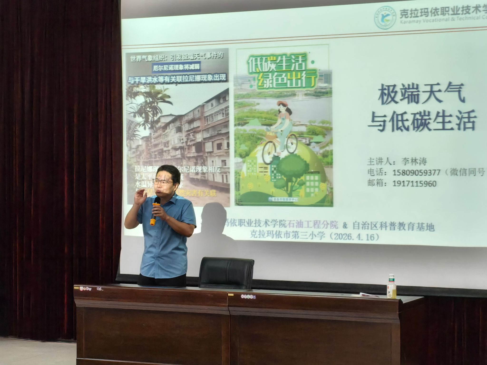4月16日,李林涛老师面向六年级159名同学开展题为“极端天气与低碳生活”的科普讲座。活动围绕气象常识与环保知识展开普及,积极倡导节水节电、绿色出行等低碳生活方式,引导学生树立生态环保理念,自觉践行绿色文明生活习惯。