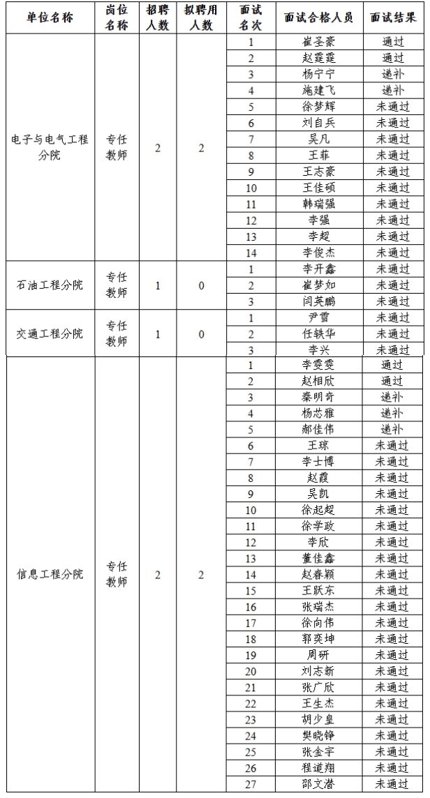 面试通过人员因个人原因放弃或资格审查出现问题,将根据递补名次依次向前递补。