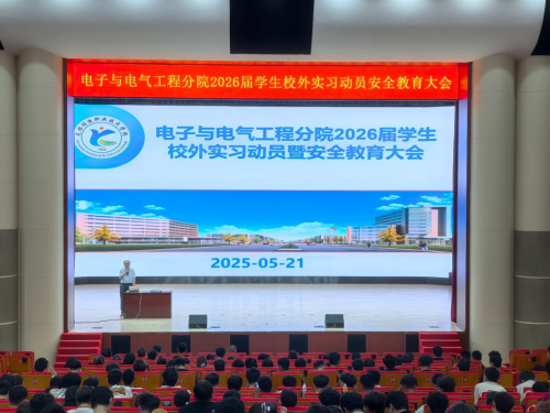 为全面做好2026届毕业生实习工作,确保实习工作落到实处,增强学生实习的积极性和主动性,同时帮助学生明确实习意义和目标,明悉实习安全注意事项,电子与电气工程分院于5月21日在大学生活动中心召开2026届毕业生实习动员暨安全教育大会,旨在为即将踏上实习岗位的学生明确实习要求、强化安全意识、保障实习顺利开展。分院领导、毕业班班主任、实习指导老师及全体2026届毕业生参加会议。 大会伊始,电子与电气工程分院院长胡小...